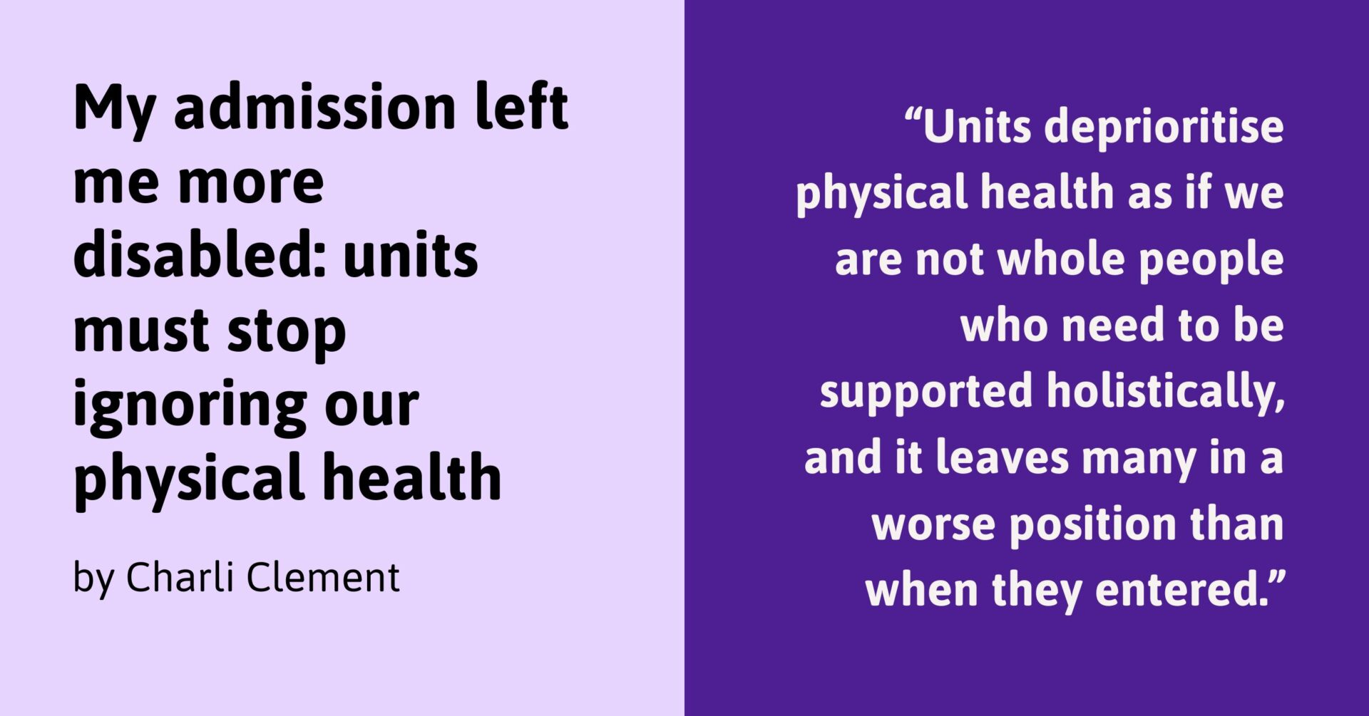 My admission left me more disabled: units must stop ignoring our physical health